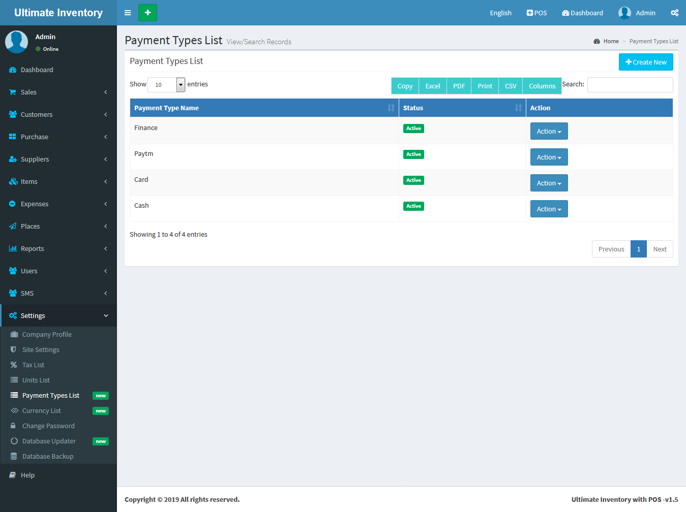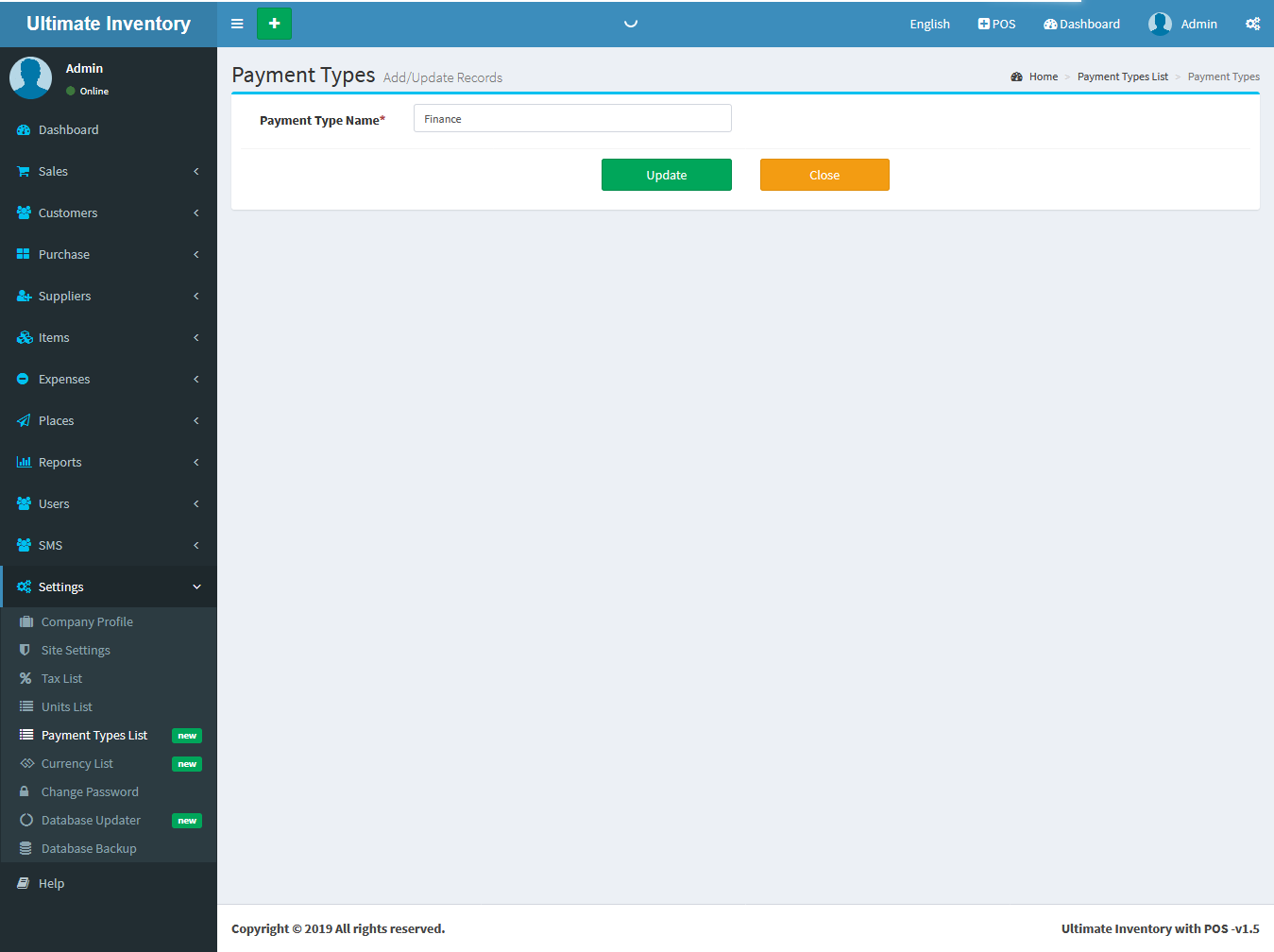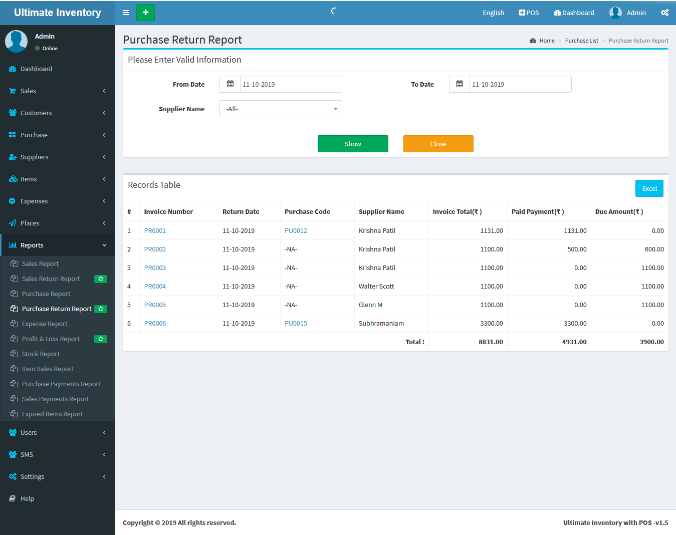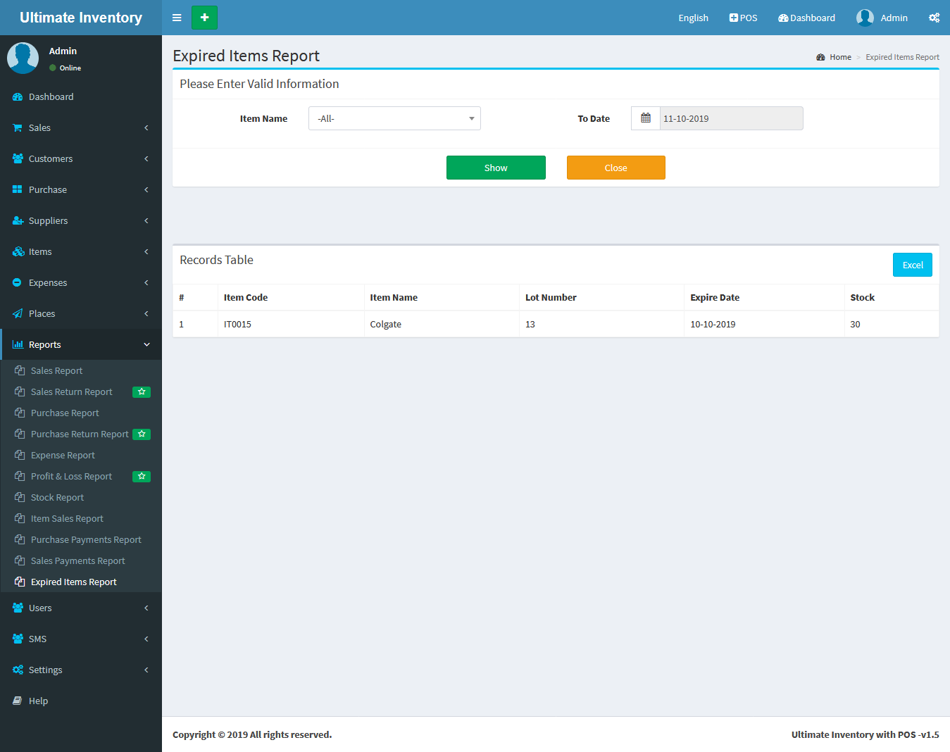 Inventory with POS is a web application software user can track Items & Stock Items, Manage Suppliers, Manage Customers, Items Categories, Sales, Purchase, Manage users and get all the reports which are require to your office and many more features.