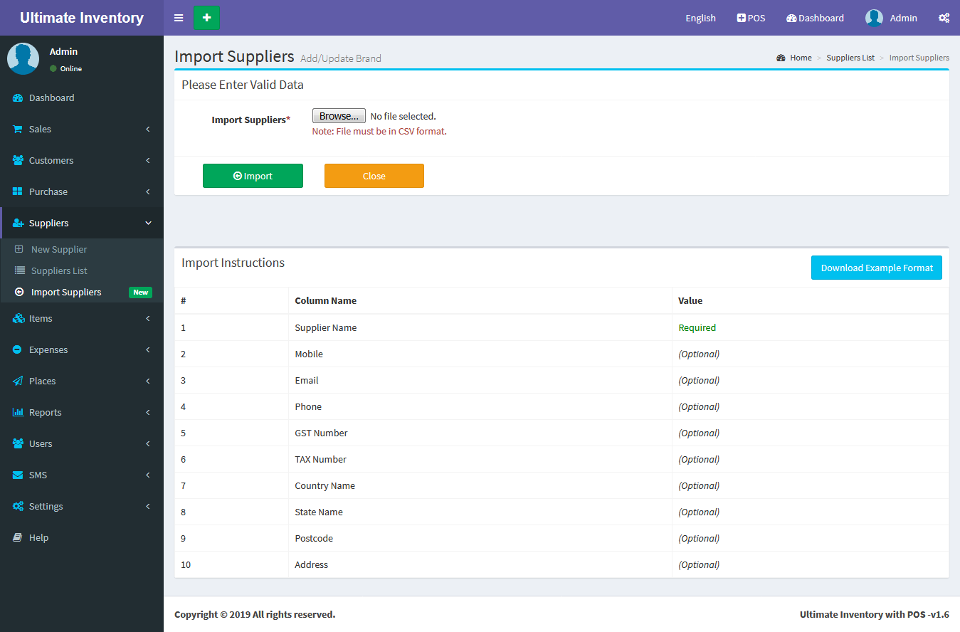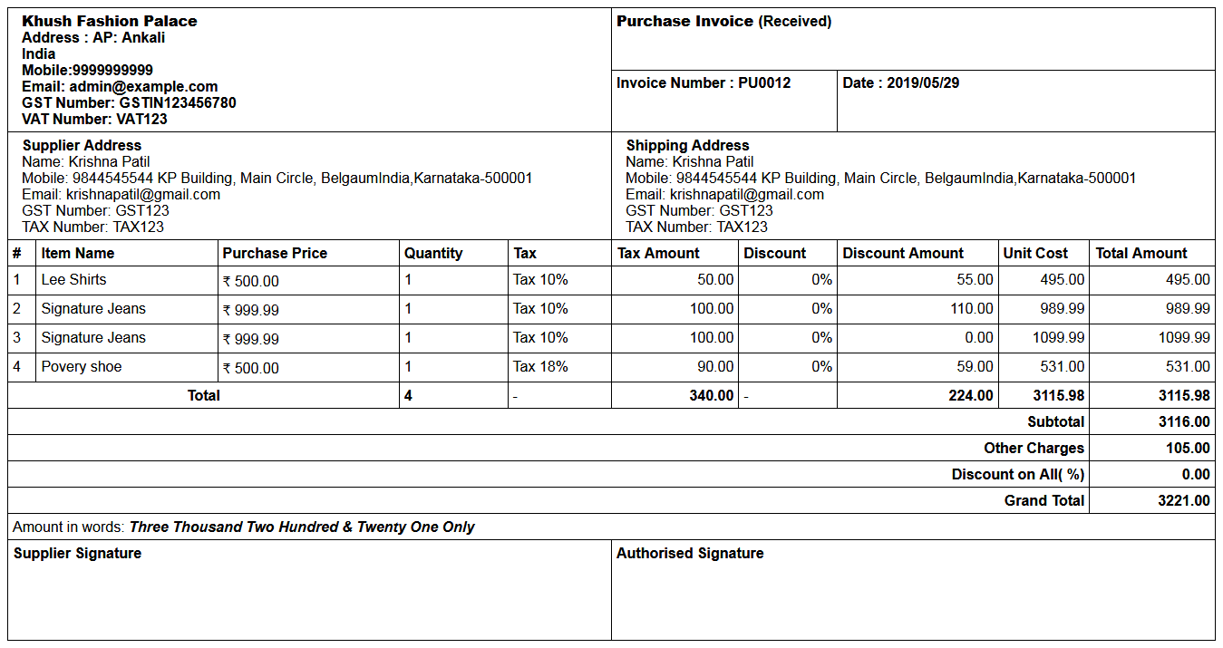 Adding a Suppliers it's a very easy task. Enter Supplier name, Mobile, Phone, Email, GST Number, TAX Number,
