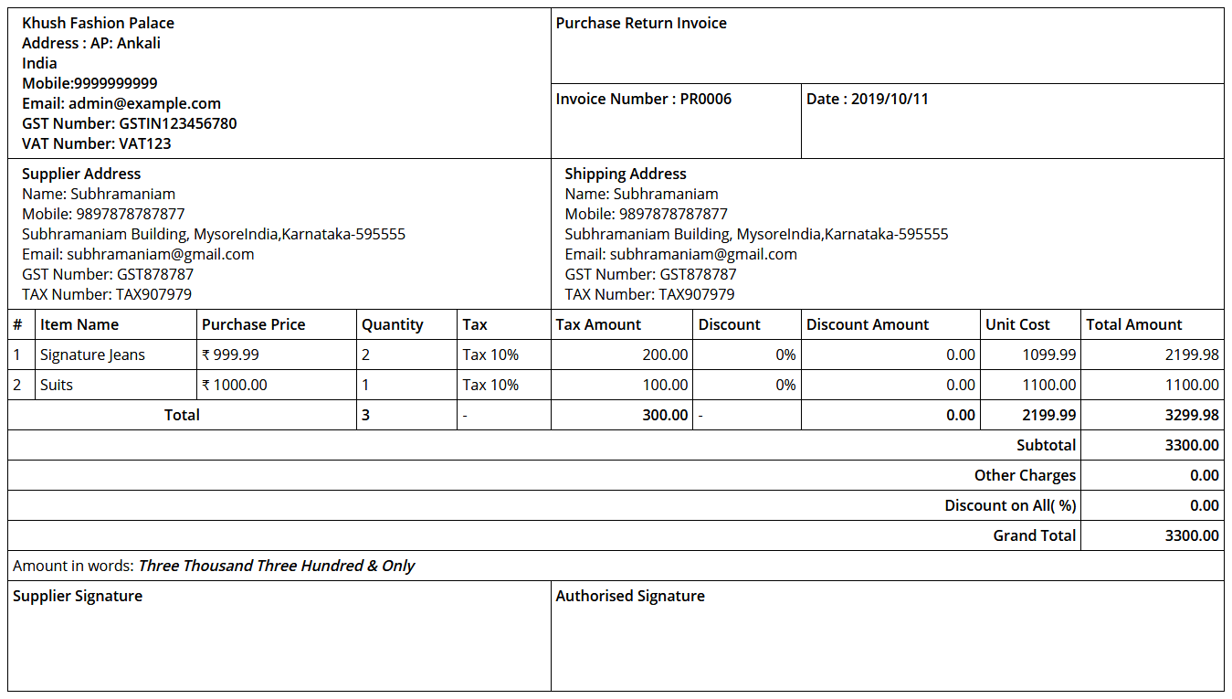 You can view the all the added Purchases Returns list and you can Purchases Return list by Delete & Edit actions.